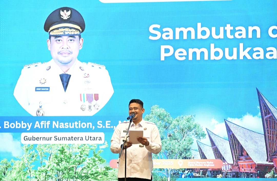 Medan-Mediadelegasi : Gubernur Sumatera Utara (Sumut) Bobby Nasution memberikan apresiasi kepada para petani hutan karena peran mereka dalam melestarikan kawasan hutan dan berkontribusi terhadap perekonomian daerah. Hutan Sumut memiliki potensi besar untuk menjaga perputaran perekonomian di Sumut. Bobby menyampaikan apresiasinya pada Lokakarya Perhutanan Sosial dan Temu Usaha Kelompok Tani Hutan di Hotel Grand Mercure, Medan.