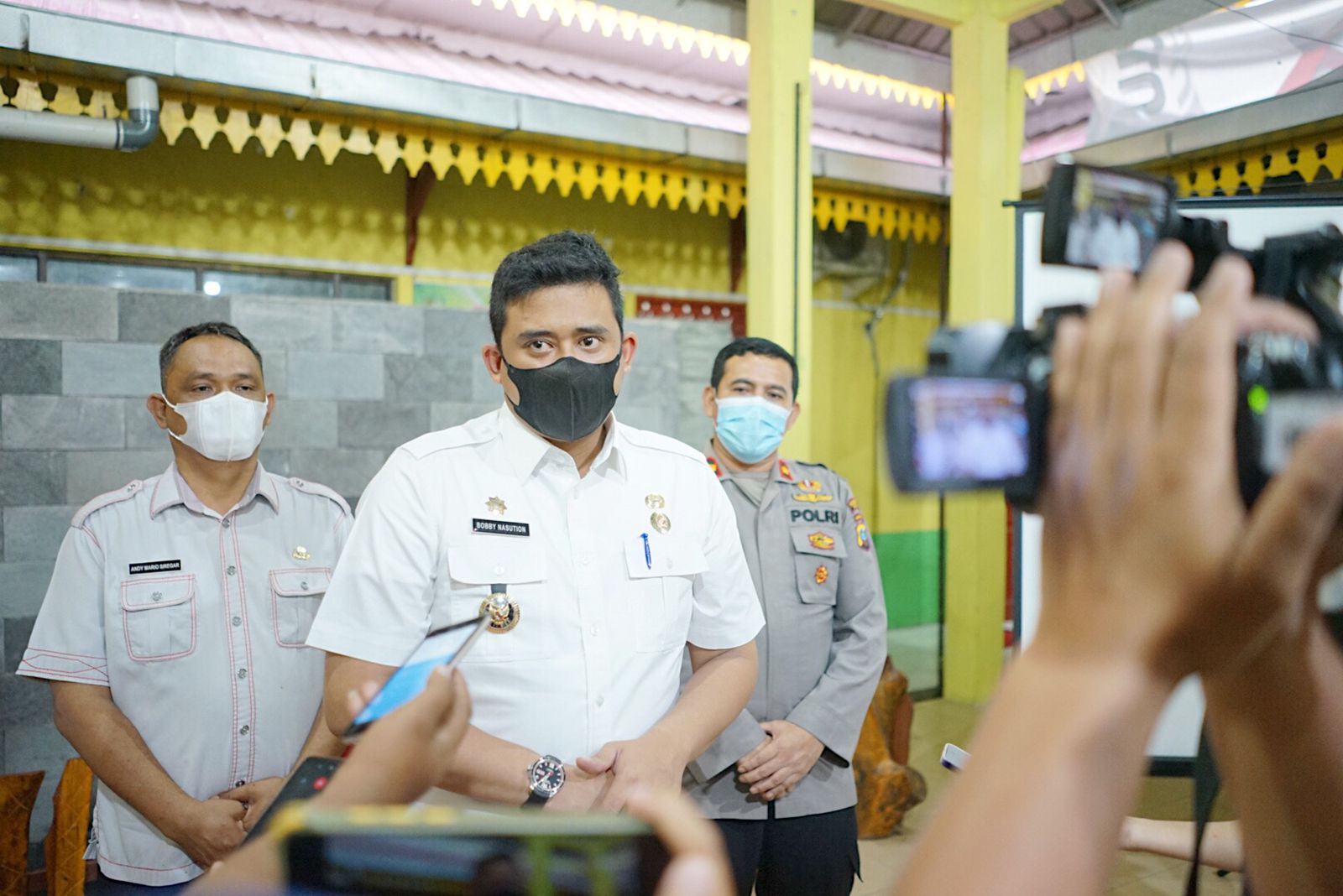 Wali Kota Medan Bobby Nasution saat memberikan keterangan kepada media di kantor Camat Helvetia