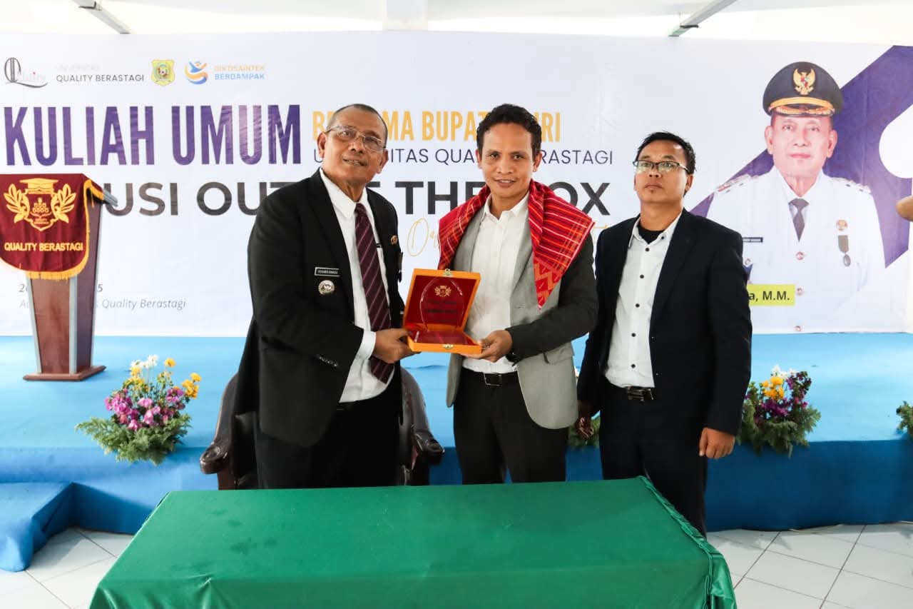 Berastagi – Mediadelegasi: Bupati Dairi Vickner Sinaga memberikan kuliah umum kepada mahasiswa yang berkuliah di Universitas Quality Berastagi pada Selasa (26/8/2025).