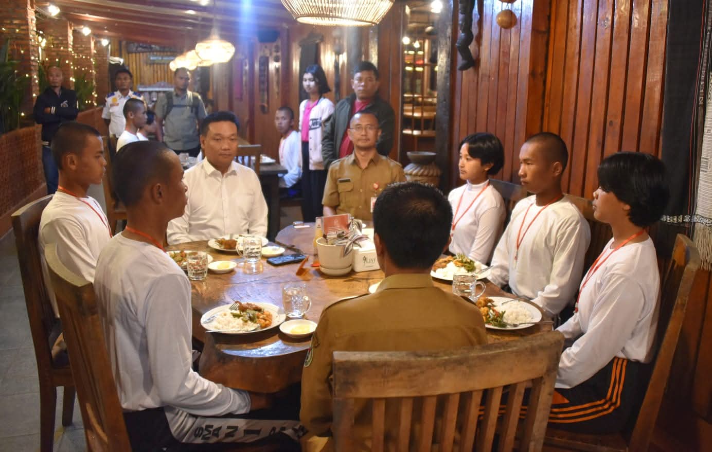 Doloksanggul-Mediadelegasi: Bupati Humbahas Dr Oloan Paniaran Nababan SH MH makan malam bersama dengan Pasukan Pengibar Bendera Pusaka (Paskibraka) Kabupaten Humbahas di Hotel Martin Anugrah Doloksanggul, Selasa 12 Agustus 2025 malam.
