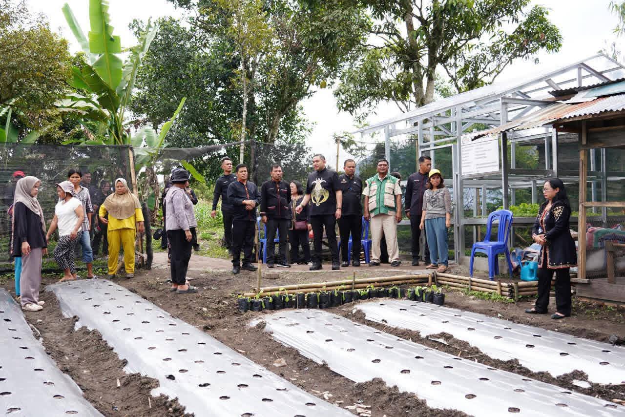 Pakpak Bharat-Mediadelegasi: Bupati Pakpak Bharat, Franc Bernhard Tumanggor meninjau areal kebun “B2SA” (Beragam, Bergizi, Seimbang, Aman) milik ibu-ibu PKK di desa Silima Kuta, Kecamatan Sitellu Tali Urang Julu. Aneka sayuran, cabai dan ternak ayam kampung terawat baik di kebun B2SA ini.
