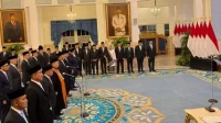 Jakarta-Mediadelegasi : Presiden Prabowo Subianto resmi melantik sejumlah pejabat tinggi negara di Istana Negara, Jakarta, Selengkapnya