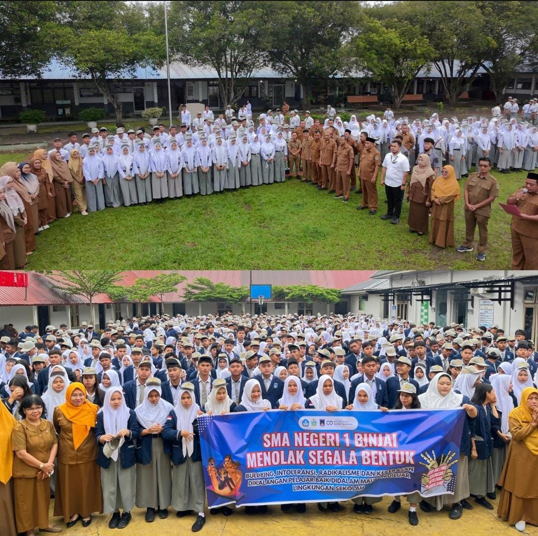 Medan-Mediadelegasi: Tim Densus 88 AT Polri Satuan Tugas Wilayah Sumatera Utara bersama Cabang Dinas Pendidikan Wilayah II menggelar deklarasi Pencegahan Kekerasan (Bullying), Intoleransi, Radikalisme, dan Terorisme secara serentak di 207 sekolah tingkat SMA/SMK di wilayah Binjai dan Langkat, Senin (24/11).