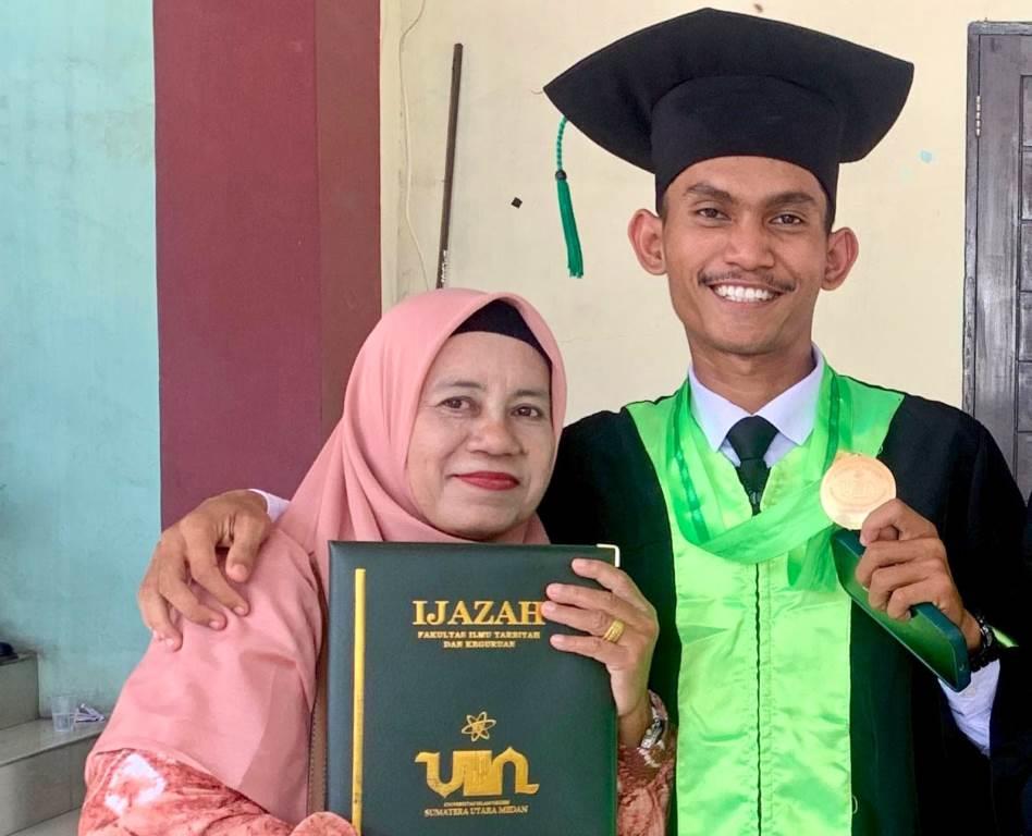 Medan-Mediadelegasi: Peringatan Hari Ibu kembali menjadi ruang refleksi, bukan sekadar perayaan simbolik. Di balik capaian akademik yang membanggakan, tersimpan kisah sunyi tentang doa, pengorbanan, dan ketulusan seorang ibu yang kerap luput dari sorotan. Kisah itu datang dari Rizqi Almaajid, lulusan terbaik Program Studi S1 Manajemen Pendidikan Islam Universitas Islam Negeri Sumatera Utara (UINSU) Medan dengan Indeks Prestasi Kumulatif (IPK) 3,97.