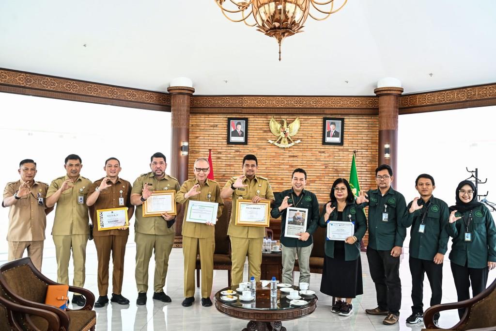 Gubernur Sumatera Utara (Sumut) Bobby Nasution di dampingi sejumlah OPD, menerima audiensi Badan Pengelola Toba Caldera Geopark (BPTCG) di anjungan lantai 9 Kantor Gubernur, Jalan Diponegoro No. 30, Medan, pada Selasa (30/12/2025). Foto: Ist.
