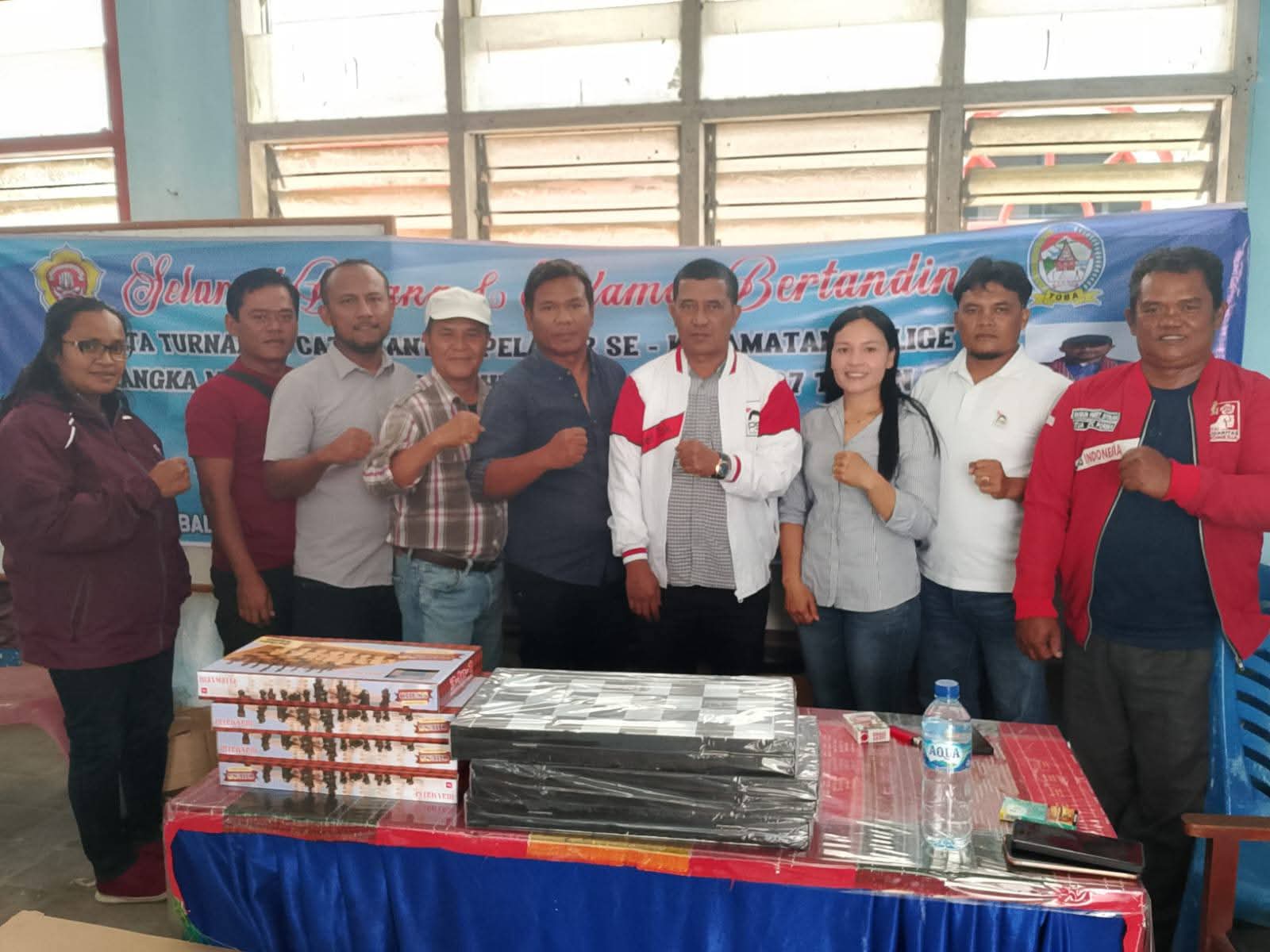 Toba-Mediadelegasi: Anggota DPRD Kabupaten Toba, Janner Sitorus, menunjukkan komitmennya dalam mendukung pengembangan potensi generasi muda dengan menyerahkan bantuan berupa 40 set papan catur kepada Karang Taruna Kecamatan Balige.