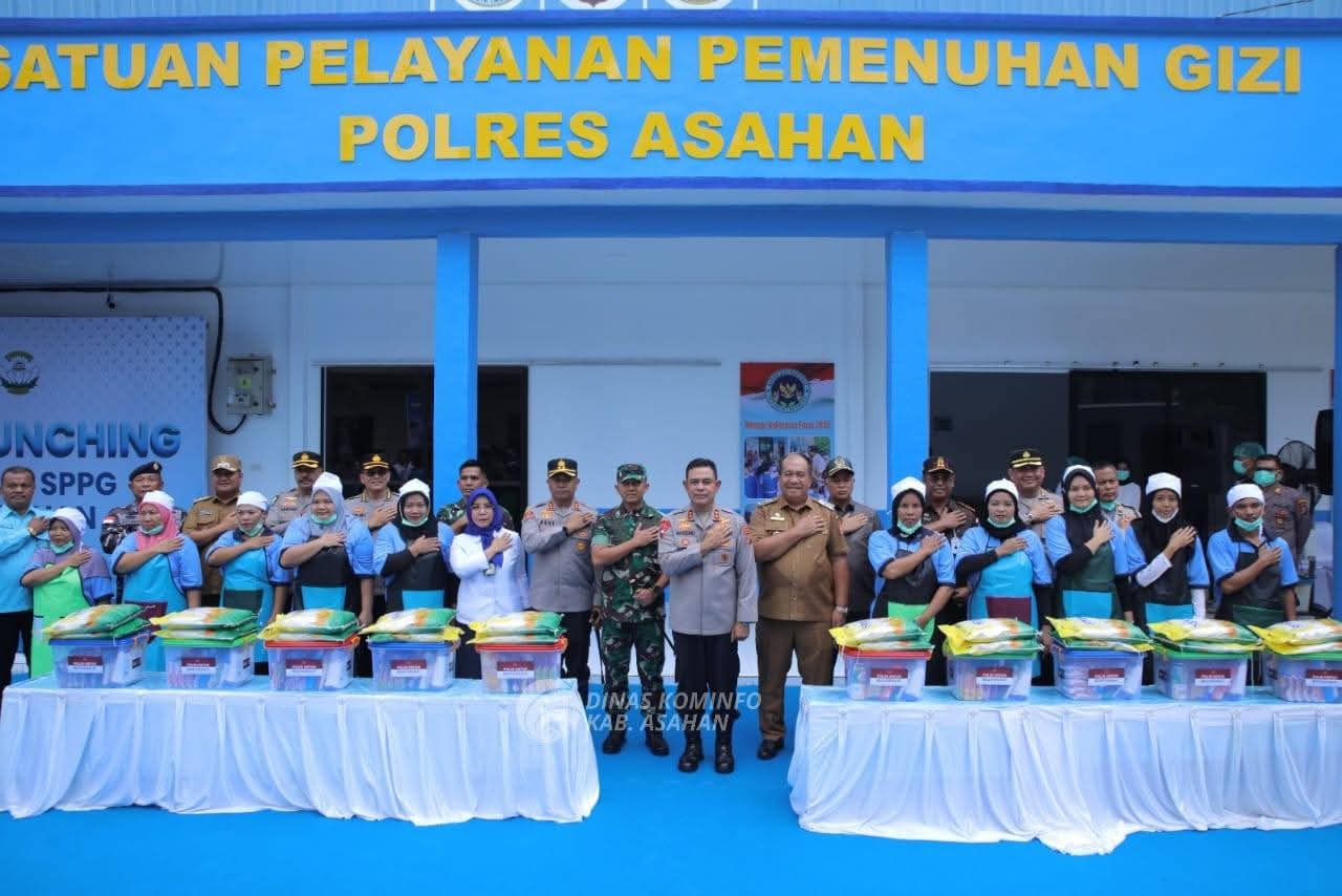 Asahan – Mediadelegasi: Suasana kebersamaan tampak di Mapolres Asahan saat Kapolda Sumatera Utara Irjen. Pol. Whisnu Hermawan Februanto, S.I.K., M.H bersama Bupati Asahan Taufik Zainal Abidin Siregar, S.Sos., M.Si meresmikan Grand Launching Operasional Satuan Pelayanan Pemenuhan Gizi (SPPG) Polres Asahan, Senin (25/08/2025).