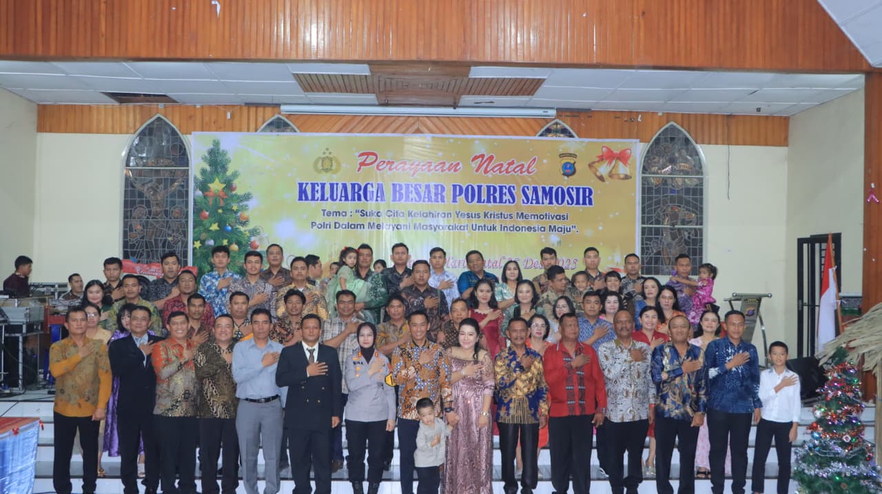Samosir-Mediadelegasi: Keluarga Besar Polres Samosir menggelar Perayaan Hari Raya Natal Tahun 2025 dengan penuh khidmat dan sukacita, bertempat di Aula Paroki Gereja Katolik Santo Mikhael, Desa Pardomuan I, Kecamatan Pangururan, Kabupaten Samosir, pada Sabtu (27/12/2025) pukul 09.00 WIB.