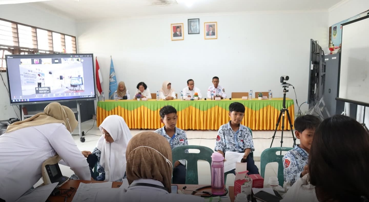 Anggiat Simanjuntak, mengikuti peluncuran program Cek Kesehatan Gratis (CKG) Anak Sekolah secara daring, Rabu (20/8/2025) di ruang kelas SMP Negeri 7, Jl H. Syech Baringin, Kota Tebing Tinggi.