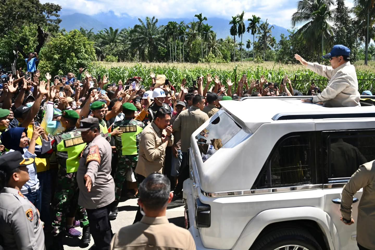 Sesaat setelah tiba, Presiden Prabowo langsung melakukan peninjauan ke lokasi Jembatan Pante Dona yang putus total akibat banjir besar yang melanda wilayah itu dan menyebabkan ribuan warga terisolasi, serta membuat jalur logistik terhenti total.