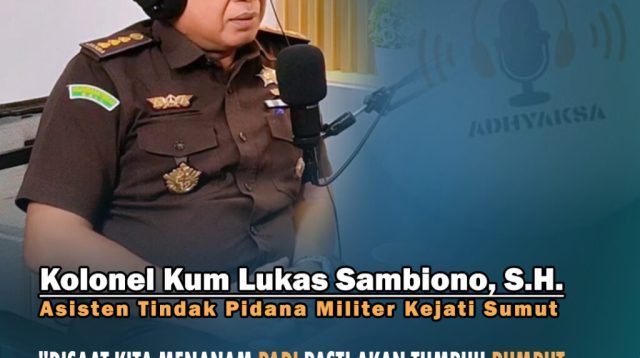 Medan-Mediadelegasi: Asisten Pidana Militer Kejaksaan Tinggi Sumatera Utara, Kolonel Kum Lukas Sambiono, S.H., menyampaikan pesan Selengkapnya