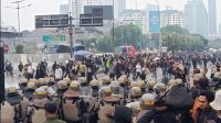 Jakarta-Mediadelegasi : Aksi demonstrasi yang berlangsung di depan Gedung DPR, Jakarta, pada hari Senin, 25 Selengkapnya