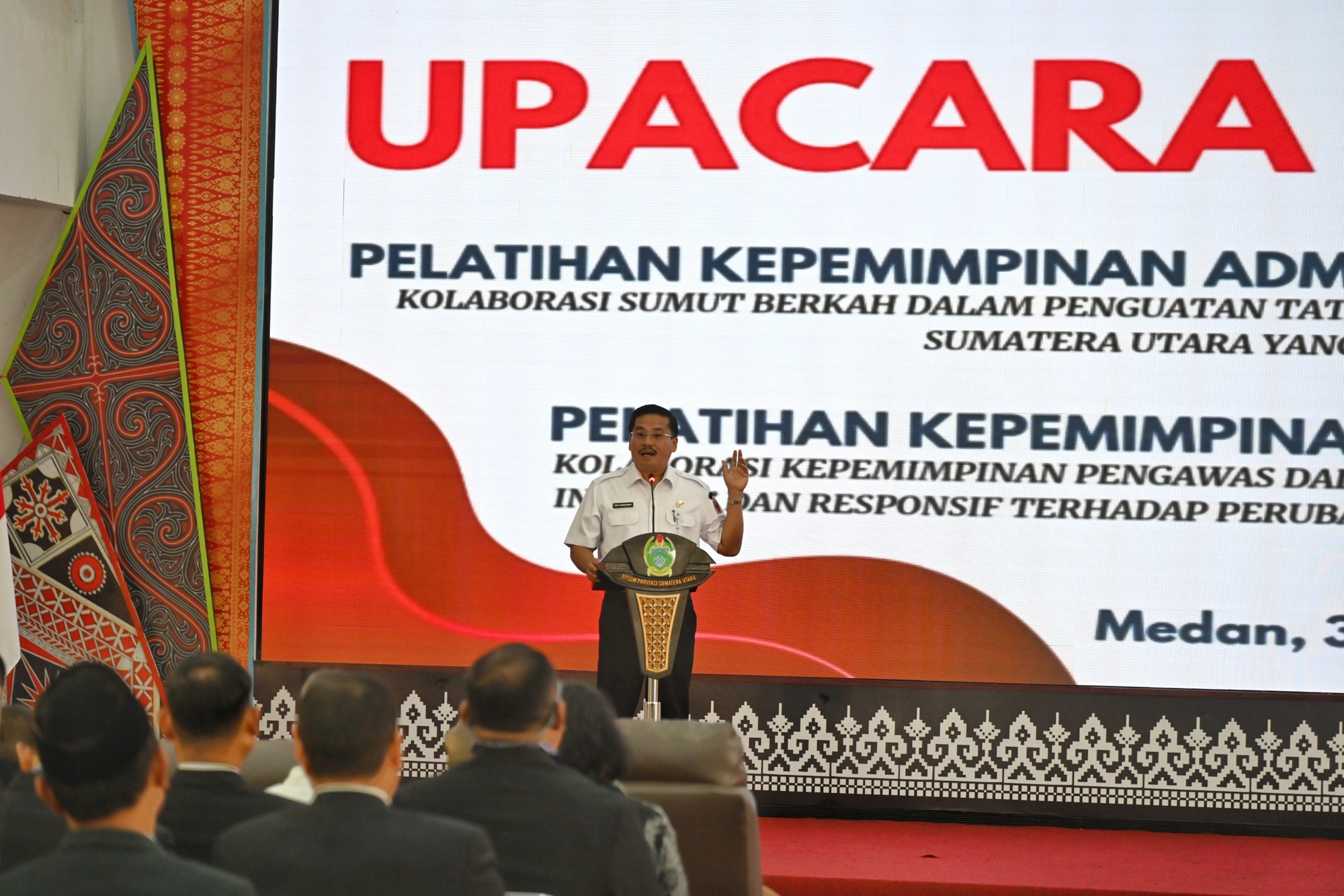 Medan-Mediadelegasi : Sekretaris Daerah Provinsi Sumatera Utara (Sekdaprov Sumut), Togap Simangunsong, menekankan pentingnya kemampuan beradaptasi bagi pemimpin di era disrupsi saat ini. Beliau menyampaikan hal ini saat membuka Pelatihan Kepemimpinan Administrator (PKA) Angkatan III, IV, V dan Pelatihan Kepemimpinan Pengawas (PKP) Angkatan I di Aula Badan Pengembangan Sumber Daya Manusia (BPSDM) Sumut Jalan Ngalengko Medan, Rabu (3/9/2025).