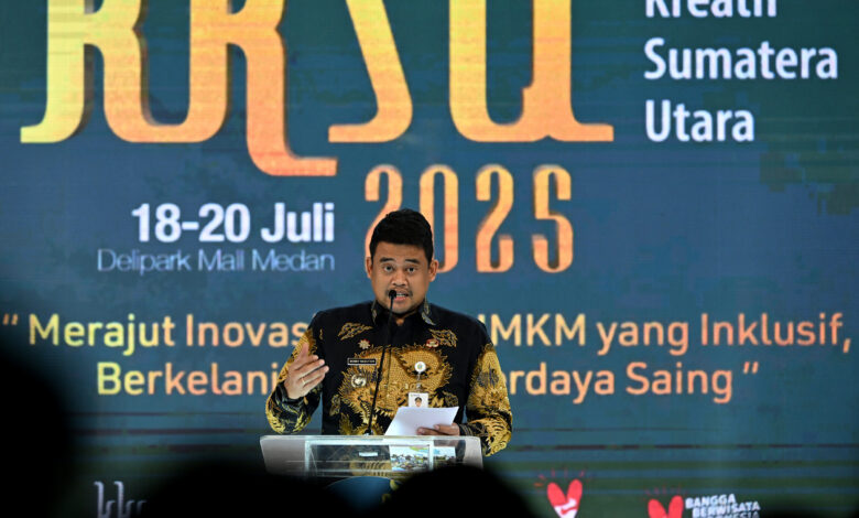 “Ini masalah di beberapa daerah Indonesia,” ujar Bobby Nasution saat membuka Karya Kreatif Sumatera Utara (KKSU) 2025 di Medan, Jumat (18/7). “Perlu kolaborasi kita bersama untuk mengangkat level UMKM kita, karena kita semua sepakat UMKM merupakan motor penggerak ekonomi Indonesia.”