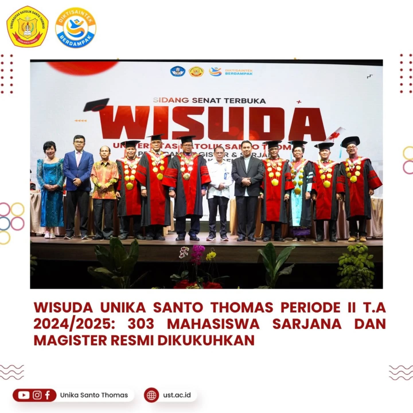 Semoga para lulusan UNIKA Santo Thomas dapat menjadi generasi emas yang mampu membawa perubahan positif bagi Indonesia. Selamat kepada seluruh wisudawan dan wisudawati! D|Red.