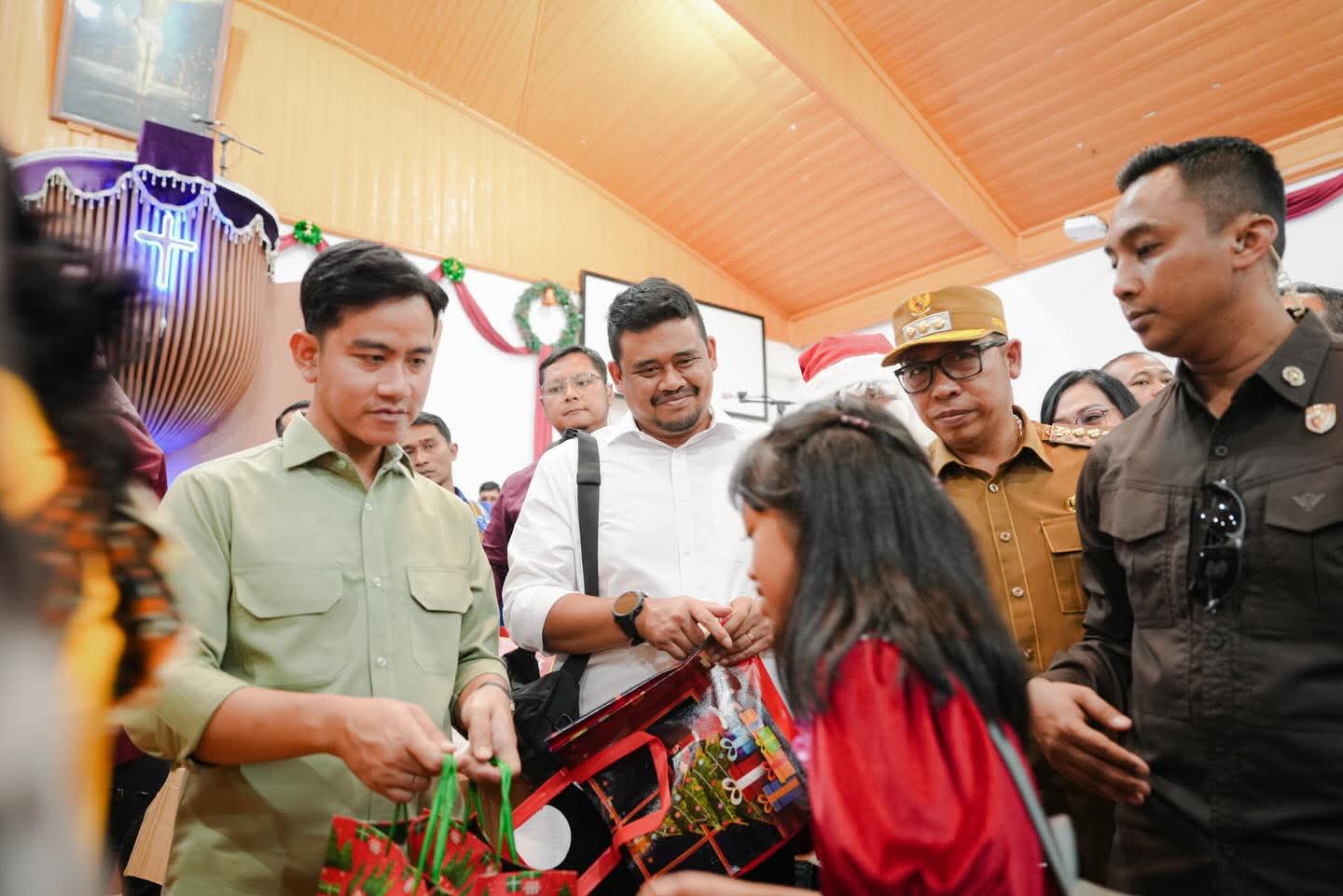Tapanuli Utara-Mediadelegasi: Wakil Presiden Republik Indonesia (Wapres RI), Gibran Rakabuming Raka menghadiri perayaan natal Gereja Kristen Protestan Indonesia (GKPI) Pearaja Tarutung, Kabupaten Tapanuli Utara (Taput), Senin (22/12).